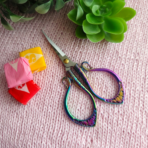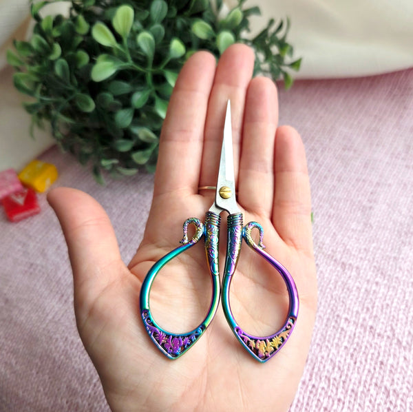 Magnifiques petits ciseaux fins importés aux multiples reflets holographiques.