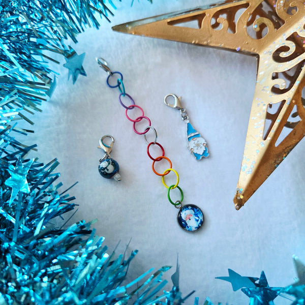 Chainette de tricot en acier inoxydable gainé qui sert de compteur de rangs. Cet accessoire est principalement adapté aux tricots en rond, mais s'utilise aussi en aller-retour ou au crochet grâce à la pince en bout de chainette!
