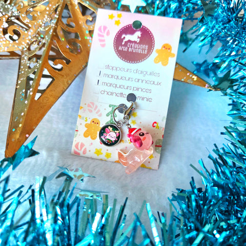 1 en résine sur pince et l'autre à dôme de verre imagé sur pince ou anneau. Les anneaux conviennent à des aiguilles jusqu'à 7.5mm de diamètre.