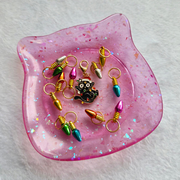❤️ 12 marqueurs ampoules de Noël sur anneaux et un chat émaillé sur pince (26)